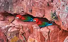 Buraco das Araras is a huge sandstone crater, a geological formation created by the collapse of boulders. It is about 500 m in circumference and 100 m deep, located in the middle of the cerrado in the state of Mato Grosso do Sul in Brazil.[1] It is home to a wide variety of birds, especially araçari toucans and red-and-green macaws, hence the name of the cave.