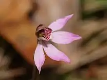 Caladenia vulgaris, commonly known as summer fingers,[2] or slender pink-fingers[3] is a species of orchid endemic to southern Australia. It has a single, long, erect, hairy leaf and one or two pink or whitish flowers.