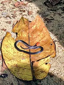 Calamaria schlegeli is a species of snake in the family Colubridae. The species is known commonly as the red-headed reed snake,[1] white-headed reed snake,[2] and pink-headed reed snake.[3] It is native to Southeast Asia, where it occurs in Brunei, Indonesia, Malaysia, and Singapore.[1]