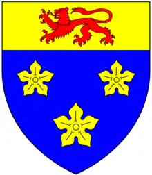 Due to the foreclosure of a mortgage, Canonteign passed to the Helyar family, which lived for some time there. The Helyar family of Canonteign traces its ancestry back to Rev. William Helyar (1559–1645) Doctor of Divinity, Archdeacon of Barnstaple, Devon, and a chaplain to Queen Elizabeth I, who purchased the manor of Coker and obtained a grant of arms from the herald William Camden in 1607: Azure, a cross flory argent between four mullets pierced or.[31] An earlier member of this family was Richard Helyar (died 1446), Archdeacon of Cornwall in 1442 and Archdeacon of Barnstaple in 1445, who was buried in the North Choir aisle of Exeter Cathedral.[31]