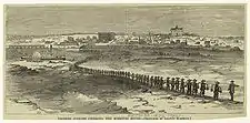 San Jose was home to five Chinatowns that existed until the 1930s.[30] The initial Chinatowns in San Jose were frequently burned down by arson.[31] Another Chinatown was excavated during an urban renewal project to build the Fairmont Hotel and Silicon Valley Financial Center on Market and San Fernando Streets.[32] This Chinatown was also known as the "Plaza Street Chinatown", which grew rapidly from the 1860s to the 1870s and was home to "several hundred Chinese". The area was subject to racial tensions, as white residents often complained to the city council that it was "bothersome". By 1870, the area was burned to the ground and many Chinese were evicted from the area as the anti-Chinese public sentiment grew.[33]