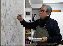 ![]() Choi Myoung Young working on the Plane Conditions series of monochromatic (Dansaekhwa) paintings | |