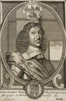 Christian of Brieg-Legnica (German: Christian von Liegnitz-Brieg, Polish: Chrystian Brzeski-Legnicki, Czech: Kristián Břežsko-Lehnický; 19 April 1618 in Oława – 28 February 1672 in Oława) was a Duke of Liegnitz/Legnica (during 1653–1654 and 1663–1664 with his brothers), Brieg/Brzeg (during 1639–1654 with his brothers), Wohlau/Wołów (during 1653–1654 with his brothers, then alone) and Oława (during 1639–1654 with his brothers, then alone). Since 1664, he was the sole ruler as Duke of Legnica-Brzeg-Wołów-Oława. He is descended from the Legnica branch of the Silesian Piasts dynasty.