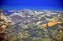 The area, which surrounds the town's downtown core[17] contains 260 properties[18] and several landmarks, including the Shipyards redevelopment on former site of Collingwood Shipbuilding, Collingwood Terminals grain elevator,[19][20] and the town hall.[21]