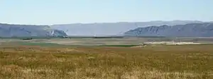Potholes State Park is a 640-acre (260 ha) park on the shore of the Potholes Reservoir. It provides ready access to the Drumheller Channels National Natural Landmark which lies just downstream of the O'Sullivan Dam. This National Natural Landmark is an extensively eroded channeled scablands landscape, characterized by hundreds of isolated, steep-sided hills (buttes) surrounded by a braided network of numerous channels. All but the channel through which Crab Creek flows are currently dry. It is a classic example of the tremendous erosive powers of extremely large floods such as those that reformed the Columbia Plateau volcanic terrain during the late Pleistocene glacial Missoula Floods.[11][12][13][14]