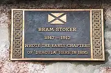 Bram Stoker plaque on the Kilmarnock Arms Hotel, Cruden Bay.