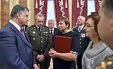 This meaning was included in dictionaries.[4] In particular, the dictionary of modern Ukrainian language and slang "Myslovo" recognized "cyborgs" as the word of 2014.[3] The same year, the President of Ukraine Petro Poroshenko recorded a New Year's address with them.[5] Other neologisms have appeared in the media: cyborgport,[6] cyborgiada.