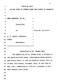 - ↑ "Stenographers copy of an expert's deposition in Anderson v. Cryovac landmark case".
