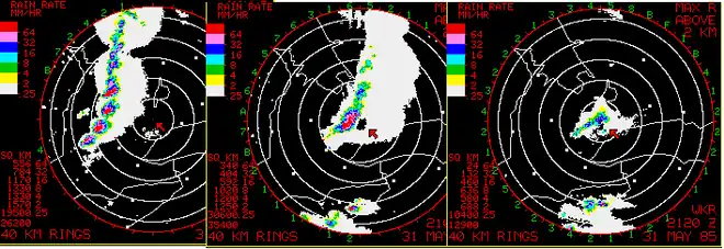 34. J. S. Marshall Radar Observatory. "Target ID Radar Images PPI 0.5-degree". McGill University. Retrieved 18 April 2013.