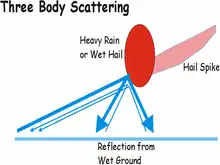 58. Lemon, Leslie R. (June 1998). "The Radar "Three-Body Scatter Spike": An Operational Large-Hail Signature". Weather and Forecasting. 13 (2): 327–340. Bibcode:1998WtFor..13..327L. doi:10.1175/1520-0434(1998)013<0327:TRTBSS>2.0.CO;2. ISSN 1520-0434.