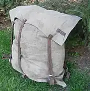 A Duluth pack is a specialized type of backpack made of heavy canvas, leather, and/or cordura nylon. The packs are a traditional portage pack which are nearly square in order to fit easily in the bottom of a canoe.[1] The simplest and most traditional Duluth pack comprises a single large envelope which is closed by straps and roller buckles. The pack is carried by two shoulder straps, and sometimes a tumpline worn over the top of the head.[2][3]