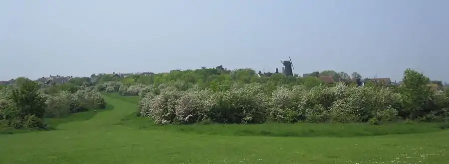 Duncan Down is an open, public, area to the south west of Whitstable and is the largest village green in the United Kingdom. It is a 21 hectare (52 acre) area of grass and woodland incorporating four ponds and a brook. The area is maintained by the Friends of Duncan Down with assistance from Canterbury City Council and has received funding from nearby planning development. Originally intended for housing development in the inter-war years it is now protected by its village green status.[1]