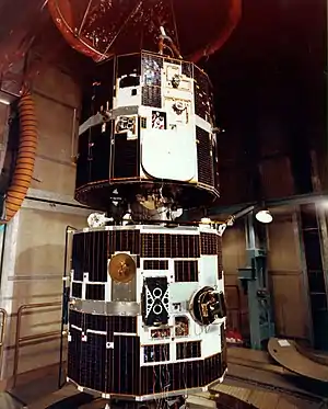 Dynamics Explorer 2 (DE-2 or Explorer 63) was a NASA low-altitude mission, launched on 3 August 1981. It consisted of two satellites, DE-1 and DE-2, whose purpose was to investigate the interactions between plasmas in the magnetosphere and those in the ionosphere. The two satellites were launched together into polar coplanar orbits, which allowed them to simultaneously observe the upper and lower parts of the atmosphere.[2]