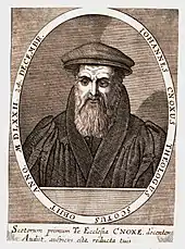 Limited toleration and the influence of exiled Scots and Protestants in other countries, led to the expansion of Protestantism, with a group of lairds declaring themselves Lords of the Congregation in 1557 and representing their interests politically. The collapse of the French alliance and English intervention in 1560 meant that a relatively small, but highly influential, group of Protestants were in a position to impose reform on the Scottish church. A confession of faith, rejecting papal jurisdiction and the mass, was adopted by Parliament in 1560, while the young Mary, Queen of Scots, was still in France.[15] Knox, having escaped the galleys and spent time in Geneva, where he had become a follower of Calvin, emerged as the most significant figure. The Calvinism of the reformers led by Knox resulted in a settlement that adopted a Presbyterian system and rejected most of the elaborate trappings of the medieval church. This gave considerable power within the new kirk to local lairds, who often had control over the appointment of the clergy, and resulting in widespread, but generally orderly, iconoclasm. At this point the majority of the population was probably still Catholic in persuasion and the kirk would find it difficult to penetrate the Highlands and Islands, but began a gradual process of conversion and consolidation that, compared with reformations elsewhere, was conducted with relatively little persecution.[16]