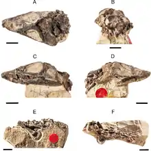 | Holotype skull, vertebrae and shoulder girdle (blocks I-II) | |