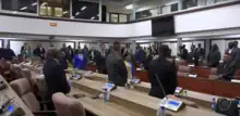 The National Assembly (Dutch: De Nationale Assemblée, commonly abbreviated "DNA") is the Parliament, representing the legislative branch of government in Suriname. It is a unicameral legislature. The assembly has been situated in the former park house at the Independence Square in Paramaribo, after a fire destroyed the old building of representation on 1 August 1996.[1] A reconstruction of the old building was completed in 2022.