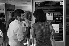One of the research team of the Institute of Cognitive Sciences and Technologies in Rome (ISTC) discussing his paper at the European Federation for Primatology Meeting in Rome, 2015