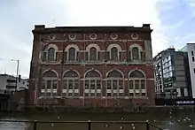 The generating station is at the eastern end of the site, next to St Philip's Bridge. It was built in 1899 for the Bristol Tramways and Carriage Company by the architect William Curtis Green.[11] The eventual demise of Bristol's tramways came on Good Friday 1941 during the Bristol Blitz, when bombs falling on St Philip's Bridge cut the power to the whole tramway system.[12] The generating station was subsequently converted into offices. It is a Grade II* listed building.[11]