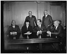 Murphy was among 12 nominated at the 1944 Democratic National Convention to serve as Roosevelt's running mate in the presidential election that year.[48] He acted as chairman of the National Committee against Nazi Persecution and Extermination of the Jews and of the Philippine War Relief Committee.[49] The first committee was established in early 1944 to promote rescue of European Jews, and to combat antisemitism in the United States.[50]