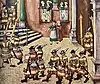 | 36 | ![]() | Tournament 9 Mummery | This painting depicts a moresca, a dance where the male dancers attempt to impress the watching ladies with wild jumps and twists. | pp. 106–107 |