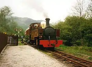 Gelert's Farm Halt railway station on the Welsh Highland Heritage Railway is a railway station in Wales that was opened in 1988. It is a simple platform alongside the main shed at Gelert's Farm Works.
