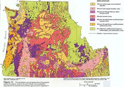 The Geology of Idaho is complex, with outcroppings of differing ages of volcanics, undifferentiated metamorphics and sedimentary structures.