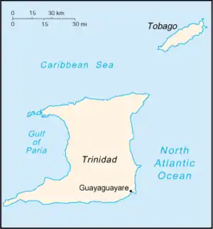 Location of Guayaguayare in Trinidad and Tobago.