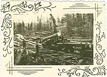 Lithuanian deportees preparing logs for rafting on the Mana River