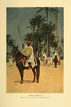 All of these various ethnic groups among and around the Hausa live in the vast and open lands of the Sahel, Saharan and Sudanian regions, and as a result of the geography and the criss crossing network of traditional African trade routes, have had their cultures heavily influenced by their Hausa neighbours, as noted by T.L. Hodgkin "The great advantage of Kano is that commerce and manufactures go hand in hand, and that almost every family has a share in it. There is something grand about this industry, which spreads to the north as far as Murzuk, Ghat and even Tripoli, to the West, not only to Timbuctu, but in some degree even as far as the shores of the Atlantic, the very inhabitants of Arguin dressing in the cloth woven and dyed in Kano; to the east, all over Borno, ...and to the south...it invades the whole of Adamawa and is only limited by the pagans who wear no clothing."[36][37] In clear testimony to T. L Hodgkin's claim, the people of Agadez and Saharan areas of central Niger, the Tuareg and the Hausa groups are indistinguishable from each other in their traditional clothing; both wear the tagelmust and indigo Babban Riga/Gandora. But the two groups differ in language, lifestyle and preferred beasts of burden (the Tuareg use camels, while Hausa ride horses).[38]