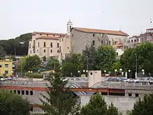 Piazzale degli Eroi, the apse of the Holy Trinity Church and the former college of the Dottrinari fathers, now the headquarters of the Paolo Mercuri State Art Institute.
