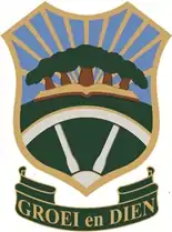 "Grow and Serve" is the motto of the school upheld throughout the past 58 years. This motto and badge were introduced at the end of 1950. The school song was the next milestone. Mr. J. A. van der Walt, a teacher, was the author of the lyrics and the famous Stephan Eyssen wrote the music. The school song was officially inaugurated at the matric farewell in 1953.