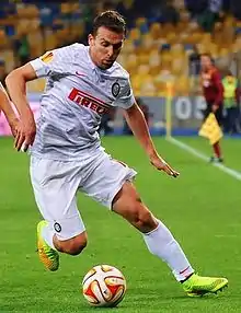 For the 2014–15 season, many rumours circulated regarding a possible departure from Inter, but the player refused to negotiate a cancellation of his contract and did not leave the club.[20] He made his European debut for Inter in the first match of the group stage of the 2014–15 Europa League against Ukrainian side Dnipro Dnipropetrovsk.[21]