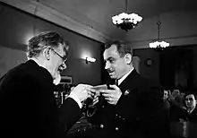 Ivan Dmitriyevich Papanin (Russian: Иван Дмитриевич Папанин, 26 November [O.S. 14 November] 1894 – 30 January 1986) was a Soviet chekist, polar explorer, scientist, Counter Admiral, and twice Hero of the Soviet Union, who was awarded nine Orders of Lenin.