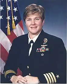 Captain Jane Skiles O'Dea was one of the first six women to earn their wings as U.S. Navy pilots in 1974, and was the first woman qualified in the C-130 Hercules.[1] She was also the first woman in the U.S. Navy qualified as a flight instructor.[2] She was the first female Navy aviator to achieve command (Navy Recruiting District, Indianapolis) and to be selected for the rank of captain.[3]