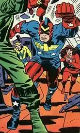 In The Avengers #97 (March 1972), a simulacrum of the Patriot was temporarily created from the mind of Rick Jones, along with those of the Blazing Skull, the Fin, and the Golden Age Angel and Vision, to aid the superhero team the Avengers during the Kree-Skrull War.[4]