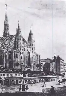 Foreground: the Kapellhaus of St. Stephen's Cathedral (demolished 1804)