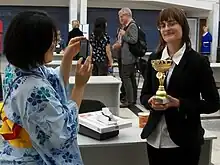 Styczyńska was invited to participate as the tournament's non-Japanese representative in Tokyo in the preliminary round of the 2nd Ricoh Cup Women's Oza Tournament on May 19, 2012. Although she did not advance beyond the preliminary round, she became the first non-Japanese female amateur to defeat a women's professional in an official game.[8][9][10]