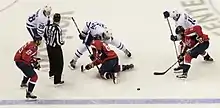 Kapanen (top-left) during a face-off against the Washington Capitals in the 2017 Stanley Cup playoffs