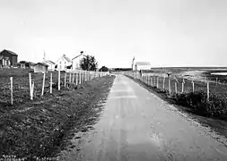 The first church in Kistrand was built in 1719. The church was a small long church made out of wood. In 1763, two side arms were added to give it a cruciform design. In 1803, the old church was torn down and a new church was built on the same site.[3]