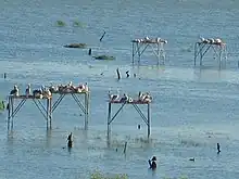 Two to three million birds out of 239 bird species that hatch, winter and stop by during migration visit here every year.[2] Some bird species breeding in the national park are great crested grebe (Podiceps cristatus), little grebe (Tachybaptus ruficollis), Dalmatian pelican (Pelecanus crispus), great cormorant (Phalacrocorax carbo), pygmy cormorant (Phalacrocorax pygmeus), grey heron (Ardea cinerea), great egret (Casmerodius albus), Eurasian bittern (Botaurus stellaris), common shelduck (Tadorna tadorna), ruddy shelduck (Tadorna ferruginea), mallard (Anas platyrhynchos), gadwall (Anas strepera), Eurasian teal (Anas crecca), red-crested pochard (Netta rufina), spotted flycatcher (Muscicapa striata), fieldfare (Turdus pilaris), spotted redshank (Tringa erythropus), common greenshank (Tringa nebularia), back-tailed godwit (Limosa limosa), common pochard (^Aythya ferina), ferruginous duck ( Aythya nyroca), Eurasian sparrowhawk (Accipiter nisus), European honey buzzard (Pernis apivorus), western marsh harrier (Circus aeruginosus), water rail (Rallus aquaticus), common moorhen (Gallinula chloropus), Eurasian coot (Fulica atra), Kentish plover (Charadrius alexandrinus), grey plover (Pluvialis squatarola), northern lapwing (Vanellus vanellus), spur-winged lapwing (Vanellus spinosus), common redshank (Tringa totanus), northern pintail (Anas acuta), northern shoveler (Anas clypeata), jack snipe (Lymnocryptes minimus), black-headed gull (Larus ridibundus), little gull (Larus minutus), great spotted woodpecker (Dendrocopos major), white wagtail (Motacilla alba), Eurasian woodcock (Scolopax rusticola).[1]