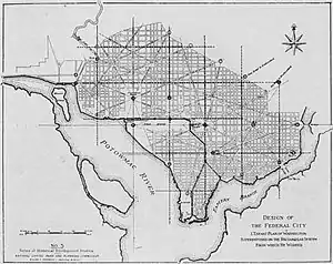 - 1 2 Moore, Charles, ed. (1902). "Fig. No. 61 – L'Enfant Map of Washington (1791)". The Improvement Of The Park System Of The District of Columbia: Report by the United States Congress: Senate Committee on the District of Columbia and District of Columbia Park Commission. Washington, D.C.: United States Government Printing Office. p. 12. Fifty-Seventh Congress, First Session, Senate Report No. 166. – via Google Books.