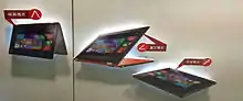 The IdeaPad Yoga Tablet is an Android tablet with a multi-mode device with a rear kickstand designed to allow it to be placed upright for viewing videos and other media or tilted for easier text entry.[17]