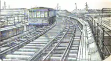 Despite public protest, the line was closed on the evening of 30 December 1956.[42] The final two scheduled trains were full of passengers and were timed to meet at Pier Head, where crowds gathered.[40] It was the first electrified urban railway in the UK to close.[37]