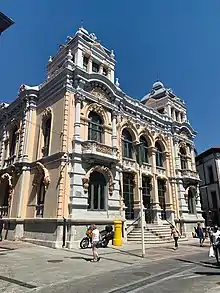 Llanes is a traditional fishing port, with an active harbour and many notable monuments and traditions; Parts of the surviving town walls date to 1206 with a medieval Tower of Llanes remaining. There is a romanic-gothic Basilica dedicated to the Virgin Mary. One plaque commemorates the 65 sailors from Llanes who sailed on the three ships it fitted out for the Spanish Armada in 1588 (the Santa Ana, the San Nicolas, and the Santelmo). Another plaque commemorates the September 26, 1517 visit of Emperor Charles V who stayed for two nights, when on his way to Valladolid to be crowned King of Castile. In the 1990s the landmark old Theatre (Teatro Benevente), built as part of the main bridge over the river, was pulled down.