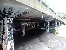 The Undercroft skateboarding area was an unused space appropriated as a cultural and recreational facility within the South Bank complex that has been used consistently for over 40 years.[5] Skateboarders initially appropriated[6] the area but it soon became used by BMXers, inline skaters, graffiti artists[7][8] and many other creatives including street dancers, musicians,[9] videographers and more.