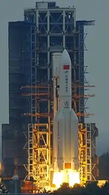 Long March 5 (LM-5; Chinese: 长征五号; pinyin: Chángzhēng wǔ hào), or Changzheng 5 (CZ-5), and also by its nickname "Pang-Wu" (胖五, "Fat-Five"),[6] is a Chinese heavy-lift launch vehicle developed by the China Academy of Launch Vehicle Technology (CALT). It is the first Chinese launch vehicle designed to use exclusively non-hypergolic liquid propellants.[7] It is the fifth iteration of the Long March rocket family.