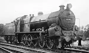 The engine was withdrawn on 19 May 1956 and scrapped by Derby Works in September 1957, having covered 838,856 miles (1,350,008 km), mostly on the Lickey.[3] BR Standard Class 9F number 92079 took over, acquiring Big Bertha's electric headlight for the duty. The other banking turns on the Lickey were operated by Midland Railway 2441 Class, LMS Fowler Class 3F 0-6-0Ts, and GWR 9400 Class pannier tanks often in pairs, operation being controlled by a complicated system of whistle codes.
