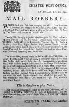 - ↑ Geri Walton (2014-04-18). "18th and 19th Century: Mail Coach Robberies". Geri Walton. Retrieved 2015-11-13.