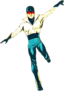 Almost nothing was revealed about the character except that he possessed super-speed and had previously worked as a circus acrobat.[3] In fact, after about a third of his feature's run, his superhuman speed was downplayed, or phased out altogether. He appeared in National Comics until issue #73 (Aug 1949).[4] He also made an appearance in Uncle Sam Quarterly (Winter 1941).[5]