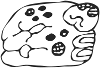A sajal was ranked below the ajaw, and indicated a subservient lord. A sajal would be lord of a second- or third-tier site, answering to an ajaw, who may himself have been subservient to a kalomte.[121] A sajal would often be a war captain or regional governor, and inscriptions often link the sajal title to warfare; they are often mentioned as the holders of war captives.[126] Sajal meant "feared one".[127] The titles of ah tzʼihb and ah chʼul hun are both related to scribes. The ah tzʼihb was a royal scribe, usually a member of the royal family; the ah chʼul hun was the Keeper of the Holy Books, a title that is closely associated with the ajaw title, indicating that an ajaw always held the ah chʼul hun title simultaneously.[128] Other courtly titles, the functions of which are not well understood, were yajaw kʼahk' ("Lord of Fire"), tiʼhuun and ti'sakhuun. These last two may be variations on the same title,[129] and Mark Zender has suggested that the holder of this title may have been the spokesman for the ruler.[130] Courtly titles are overwhelmingly male-oriented, and in those relatively rare occasions where they are applied to a woman, they appear to be used as honorifics for female royalty.[131] Titled elites were often associated with particular structures in the hieroglyphic inscriptions of Classic period cities, indicating that such office holders either owned that structure, or that the structure was an important focus for their activities.[132] A lakam, or standard-bearer, was possibly the only non-elite post-holder in the royal court.[118] The lakam was only found in larger sites, and they appear to have been responsible for the taxation of local districts.[118]